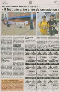 为了让当地民众了解法轮功受到的迫害,睿和丽二人利用周末时间来到(法国北部的)加莱市。曾在九十年代的中国大陆风靡一时的法轮功,于一九九九年七月二十日遭到中共政权迫害。随即,法轮功修炼者开始受到迫害、关押和虐待。