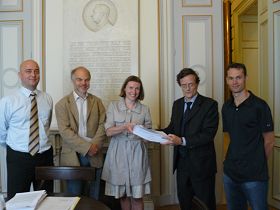 二零零八年八月十四日,法轮功受迫真相联合调查团的比利时代表向比利时首相正式递交全球百万反迫害征签结果,希望比利时政府帮助制止中共对法轮功的迫害。