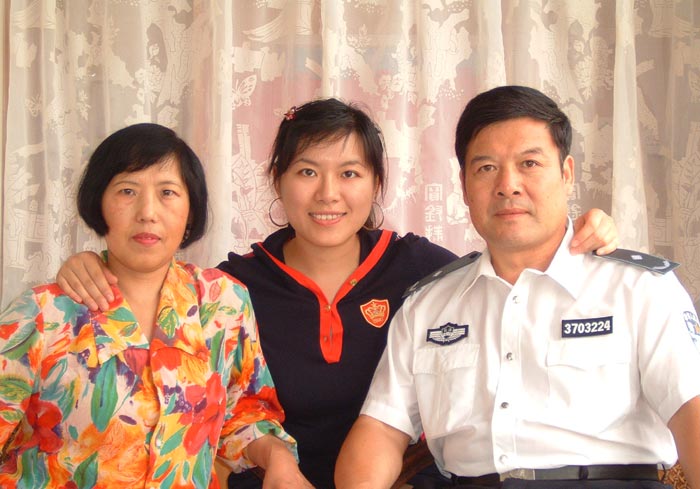 ![]() 二零零七年八月,庞靳和父母的全家福照片 |
