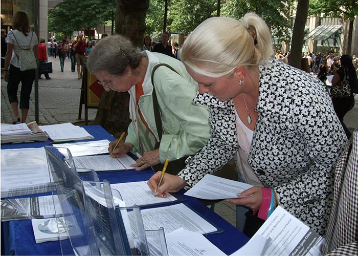 参加活动的法轮功学员表示,看到这么多人认识到中共的邪恶本性,签名支持正义,感到非常欣慰。