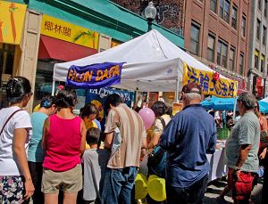 二零零八年八月十七日,法轮功学员参加了美国波士顿中国城中秋节庆。