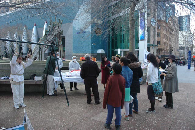 ![]() 揭露中共活体摘取法轮功学员器官的展示吸引民众了解真相 |