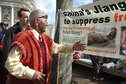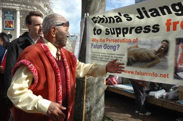 新西兰毛利族世袭酋长亚马托•阿卡若纳(Amato Akarana)也专程赶到奥克兰市的活动现场,并用毛利语和英语发表演讲支持法轮功。他说:“法轮功正在遭受魔难、痛苦和恐怖(的迫害),任何一个不支持法轮功的人就不是一个人道主义者。我支持所有在这片土地上的法轮功学员,他们会得到所有在这片土地上毛利人的支持。我以我的生命、我的一生、我的村落、我的家人的名义发誓,支持法轮功的反迫害。”