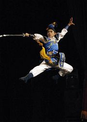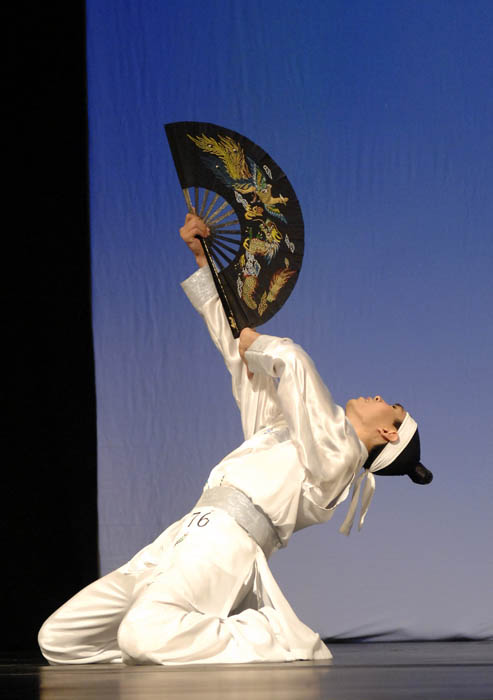 ![]() 青年男子组参赛者赵亮表演“扇若剑舞” |