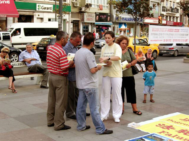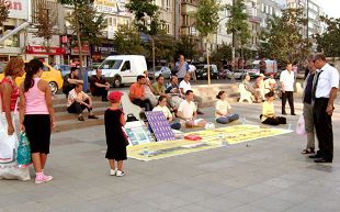 【明慧网二零零八年八月二十四日】二零零八年八月二十三日,法轮功学员来到瑞典首都斯德哥尔摩的钱币广场(Mynttorg)上,向来自世界各地的游客讲述法轮功无辜遭到中共迫害的真相,揭露中共活摘法轮功学员器官的暴行,并为华人退出中共相关组织和西方人了解中共邪恶的本质提供方便途径。