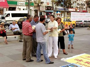 活动快结束的时候来了一位年轻的女孩,她是刚刚从中国来斯德哥尔摩上大学的,今年才二十一岁。开始,她不接任何资料,还很生气。她说自己是最爱国家的,并提了很多问题,显然是受了中共诋毁法轮功的谎言宣传的欺骗。针对那些使她迷惑的地方,法轮功学员们耐心的给她讲真相,从“天安门自焚”讲到中共活体摘取法轮功学员器官,又从“中共不等于中国”讲到《九评共产党》、退党大潮。在大量的事实面前她沉默不语了。她说,其实她也很痛恨这腐败邪恶的中共政权。最后她接受了《九评》和法轮功真相资料,并表示回去后会仔细的看看,要好好的思考一下。