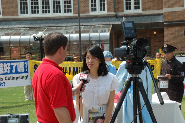 WCBI电视台采访了活动组织者刘女士。刘女士说,我们知道中共在办奥运,但是在这个看似鲜亮的表面的背后有很多酷刑发生。我们有很多从中国传出来的证据。现在我们是努力希望人们能够了解真实的中共。