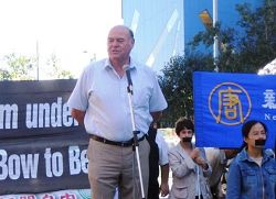 他并敦促澳洲总理和民众关注欧卫事件。“今天上午我在此呼吁澳洲总理,站出来谴责中共干预新唐人在欧卫卫星上的播出。女士们,先生们,这是很严肃的事情,感谢您的支持,让我们共同帮助在中共政权统治下受尽苦难的法轮功学员和其他中国人民。”