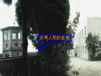监舍四角建有武警值勤守卫的岗楼。(见下图)