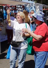 一位名叫Beth的女士跟学员说,她看到法轮功学员的展位,就过来拿资料。她曾在佛利蒙图书馆参加过法轮功教功班,学过动功,感觉很好。她今天来拿更多的资料,并了解当地的炼功地点。