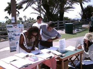 洛杉矶圣塔莫尼卡海滩是世界闻名的旅游胜地,这里四季如春,风和日丽。游客如潮,来自世界各地。许多游人一听说“请支持中国人的人权”,二话不说就签上了自己的名字。很多人表示已经知道中共践踏人权的所作所为,主动签名。签名桌前一时颇为拥挤。很多人想知道更多详情,向学员提问,仔细看展板内容。