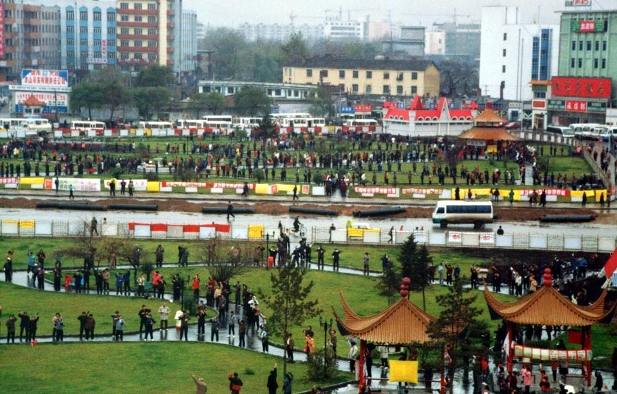 ![]() 佳木斯站前广场集体洪法炼功场面(1998年拍摄) |