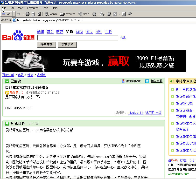 最近,在一次同学聚会上碰见一位老同学,这位老同学的腰不好,前段时间在江西省武警总队医院看了一下。她说,一到泌尿科(5楼),就看到墙上贴着活体肾移植的广告(有的广告为掩人耳目写着亲属活体肾移植)。