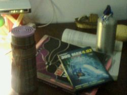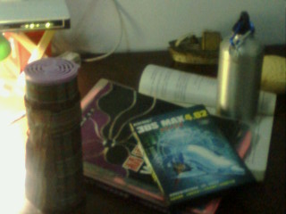 看到左边的图了吗?里边的一个光盘盒和一本大文件夹,打开来,就是右边图里的小喷字模板和大的模板。左图里的两个杯子,打开后原来藏着喷漆瓶哦。