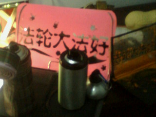 到商店卖地板革的地方,有很多铺桌子的塑料橡胶,要选择符合刻字的厚度。商店卖剩下的小块,也就几元钱,那些就够用了。买回来后,把要刻的写在上面或用电脑调好美术字,再用打印机打出来,用复写纸写好后,再用刻刀直接就刻。字的大小随意。整个过程需要二十分钟就可以完成。把做好的字卷个圆筒,这样字就不会变形,然后到装饰材料买一罐自动喷漆,六元钱一罐,随身携带特别方便。经济条件不好的同修也能做。总的做下来也就十元钱就够用了特别简单好做。