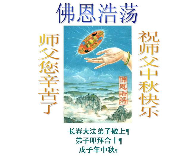 每逢佳节倍思亲,葫芦岛大法弟子更加想念师尊,在此我们全体葫芦岛大法弟子向师尊致以深深的问候!遥祝师尊中秋节快乐!叩谢师尊慈悲苦度,师恩浩荡!