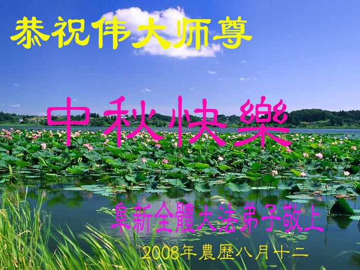 值此一年一度的中秋节来临之际,黑龙江省大庆市龙凤区全体大法弟子向师尊问好!并遥祝师尊中秋节快乐!