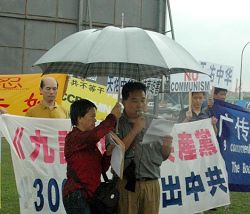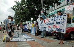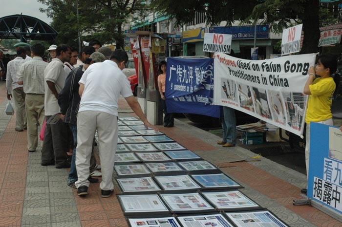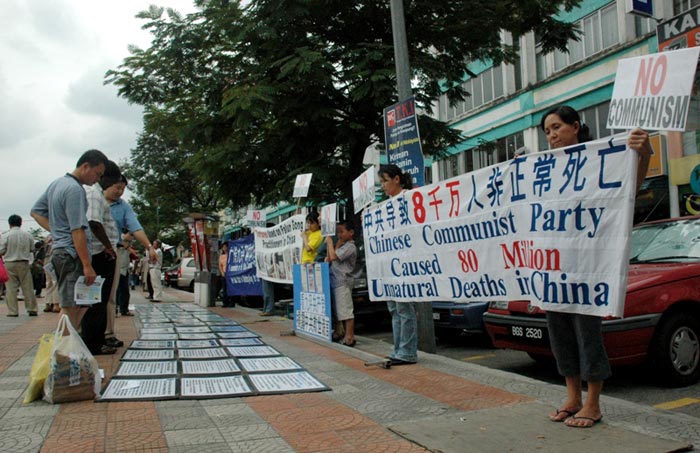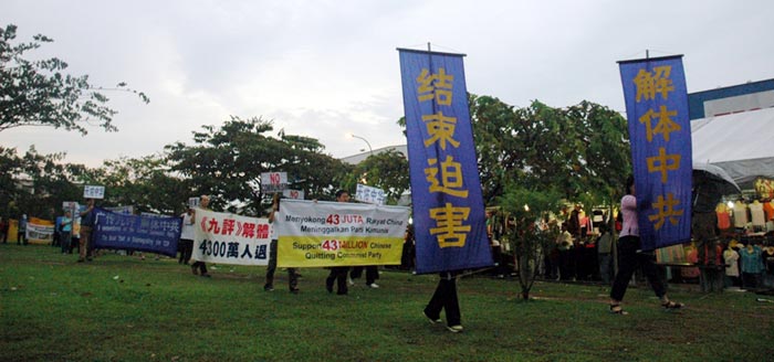 【明慧网二零零八年九月十六日】在大纪元网站声明退出中共及其相关组织的人数将近突破四千三百万之际,马来西亚退党服务中心与当地民众于二零零八年九月十四日,分别在雪兰莪州的沙亚南太子园和蒲种市中心,举行声援活动,进一步让此地民众了解中共的暴政、及目前发生在中国的三退大潮。
