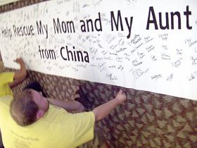 一位叫Andrew的学生在E-mail中写道:“我今天拿到关于帮助营救你妈妈和姨妈资料,我当时并没有时间去签名,但是在我读过这个感人的故事后,我决定我一定要去签名,我希望你们明天还在那儿。”