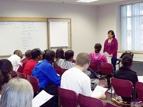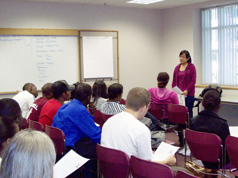 ![]() 国际学生学生会的成员认真聆听庞靳讲述家人受中共迫害的经历 |