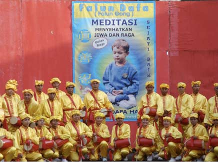 ![]() 法轮功学员的腰鼓表演 |