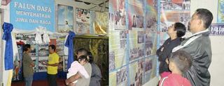 一群来自邦里市的青年,来到法轮大法的展位时感到很奇特。他们说经常学炼气功,但是从未接触过法轮大法。他们能够感受到来自法轮大法展位上的一种非常祥和的场。获得学员们的解释之后,他们很热心的说想要在网路上再找找关于法轮大法的资料。