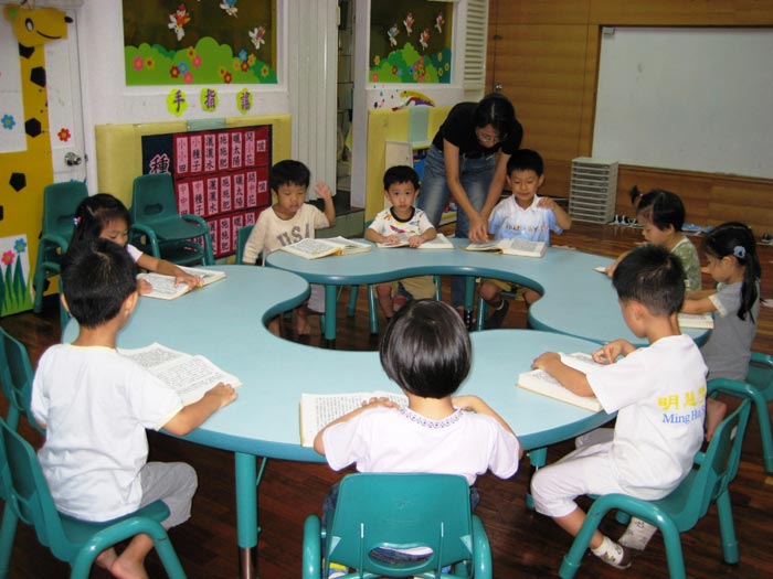 这里是经过政府核准立案,位在台北县永和市著名学区的一家托儿所──明慧学校豆豆园;早上七点半至九点时间,陆续有家长将小孩送来,年龄从二岁多到六岁左右,他们分别来自永和当地、台北市吴兴街、内湖区、士林北投区,也有特地迁居到园区邻近的,以求方便。