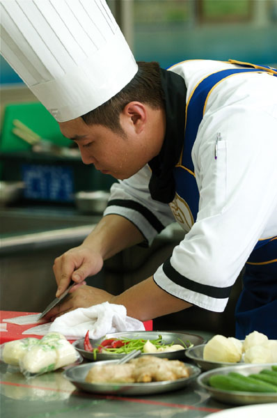 不担心被自己的学生超越。何金城认为,过去老厨师教徒弟,不是留一步不教,是因为不擅言词而交代不清,现在教学则是学与术的结合,从营养学概念开始,让学生清楚了解食材、佐料选用的不同。他常告诉学生,这是门辛苦、高危险的行业,非得要有兴趣才能坚持下去。对他来说,传承要谨记尊师重道,也是一种使命。
