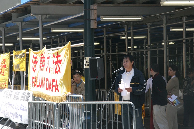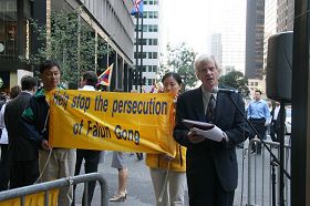 ![]() 法轮大法学会会长杨森从芝加哥来到纽约呼吁停止迫害法轮功 |