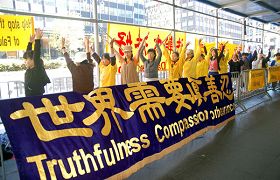 二零零八年九月二十三日到二十四日,法轮功学员连续三日,在中共总理温家宝来联合国参加各国首脑峰会期间所下榻的纽约沃道夫旅馆的对街,举行反迫害集会,呼吁立即制止中共对法轮功长达九年多的残酷迫害。