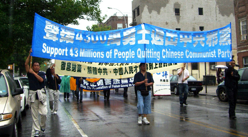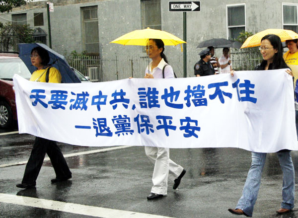 ![]() 纽约布碌仑区中国城游行,声援中国人民三退 |