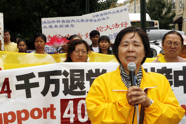 法拉盛居民刘国华先生,原为中国东北大学法学教师,他说自己参加全程游行,虽然因下雨全身湿透,但心里非常非常高兴,他表示:“法轮功的朋友做了一件天大的功德,由于他们的讲真相,中国大陆有四千三百万民众退了党、团、队。我们可以肯定的告诉大家,凡是退了党、团、队的,都是得救的人,他们将开始一个新的生命,他们不会随着中共的恶党一起灭亡。”