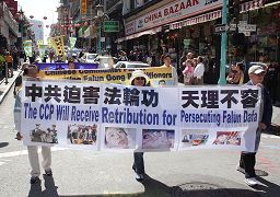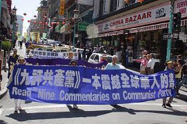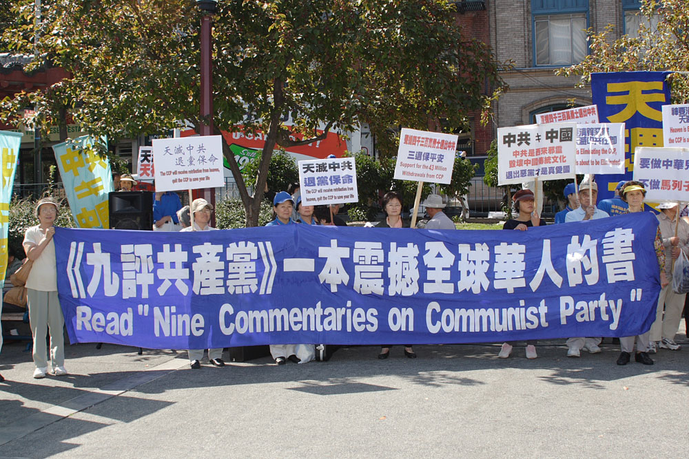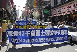 【明慧网二零零八年九月二十九日】(明慧记者王英旧金山报导)毒奶粉事件中,中共知情不报,隐瞒真相。中共草菅人命的行径直接危害每个家庭的生命和健康。目前已经有四千三百四十万中国同胞认清了中共本质,退出了中共。九月二十八日,湾区各界人士在中国城举行游行集会,庆贺大陆同胞的壮举。
