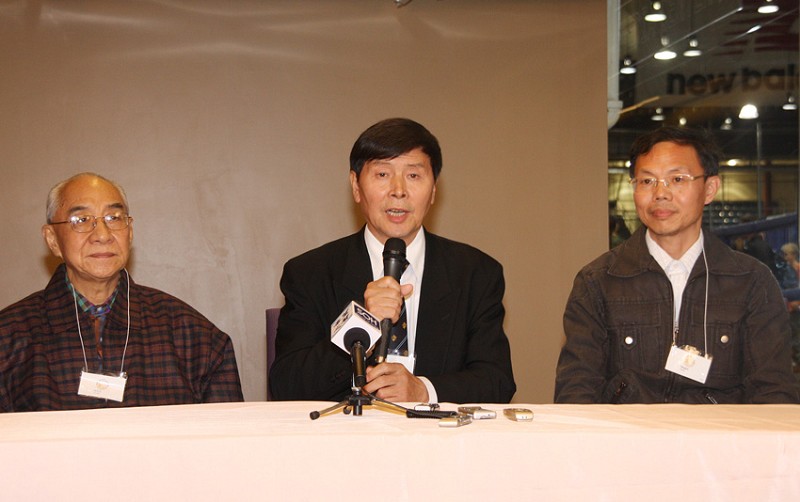 颁奖仪式后,大赛评委会主席李有甫(中)、大赛裁判长赵爱伦(左)和大赛裁判长邹增华(右)在记者会上表示,本次大赛举办的很成功。