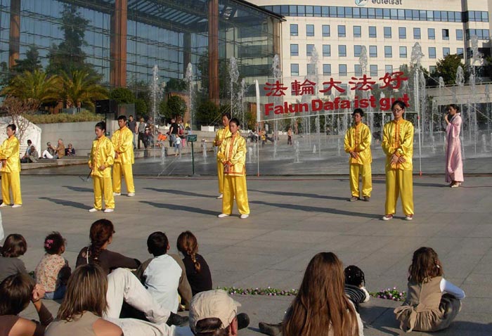 安德烈·雪铁龙公园坐落在欧卫公司的旁边,所以节目主持人向观众介绍了有关欧卫关闭新唐人电视台信号的事项,观众们在表演结束后向记者表示他们对欧卫的做法感到很遗憾,也恳切希望欧卫能早日恢复新唐人电视台向中国大陆的播出。