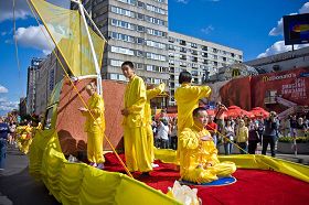 【明慧网二零零八年九月四日】二零零八年八月三十一下午,波兰华沙市中心SWIETOKRZYSKA的大道上,出现了一支五彩缤纷的游行队伍,吸引了无数路人驻足观看,这是二零零八年波兰华沙多元文化节彩车大游行。