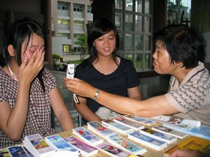 同是任教屏中美术班的张老师,跟蔡主任的情况雷同,经过蔡主任的推荐后,她拄着拐杖仔细的聆听导览,心中很多的疑惑豁然开朗。她终于明白为什么法轮功学员总是人手一册,好学不倦。她说:“我回去得要好好看《转法轮》了。”