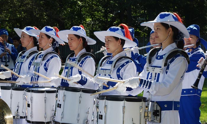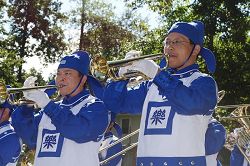 由六十多名法轮功学员组成的天国乐团还引起了当地乐队的兴趣。当得知天国乐团在成立一年多时间内,参加了五十多场游行,他们表示很敬佩。