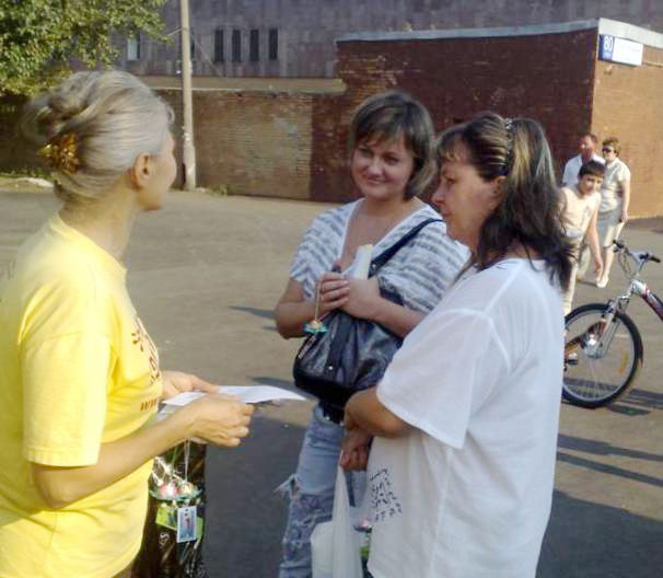 俄罗斯法轮功学员莫斯科街头讲真相(图)