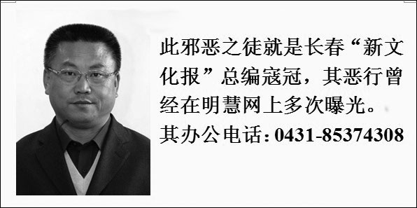 此邪恶之徒就是长春市《新文化报》主编寇冠,屡次诬蔑法轮功,其恶行在明慧网上多次曝光。电话:0431-85374308。
