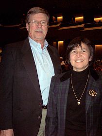 ![]() 硅谷电子公司Emasys的创始人莱瑞(Larry Roofelsen)与朋友艾玛观看了神韵在硅谷库市的最后一场演出。 |