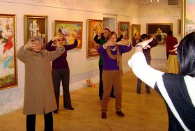 画展期间,有很多人也纷纷表示要学炼法轮功并向学员索要了教功光碟。厚厚的画展留言簿上,写满了人们对参展作品的高度评价、对法轮功学员的真诚祝福以及对中共暴行的严厉谴责。