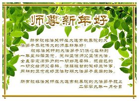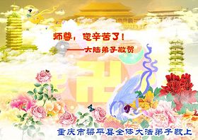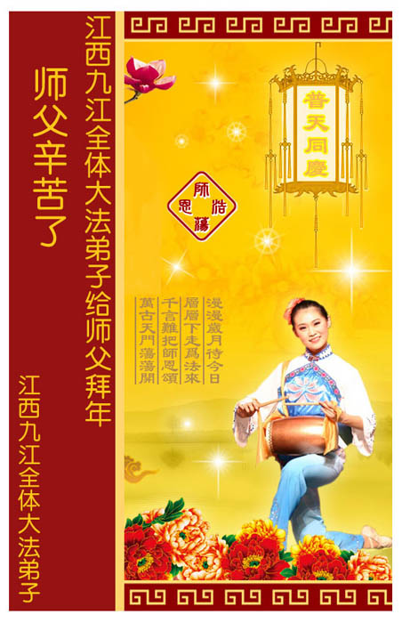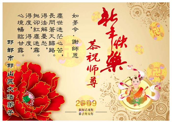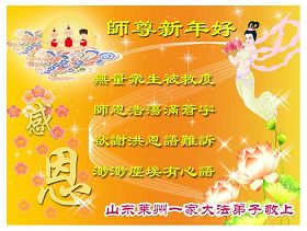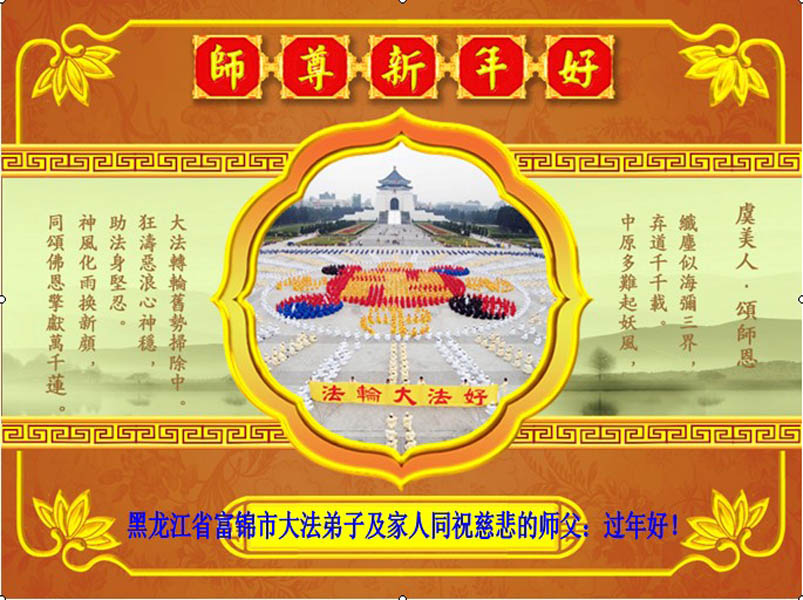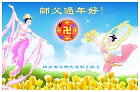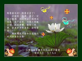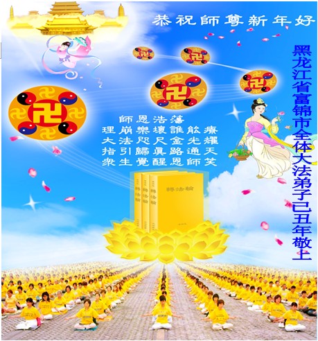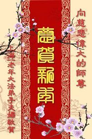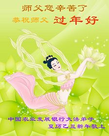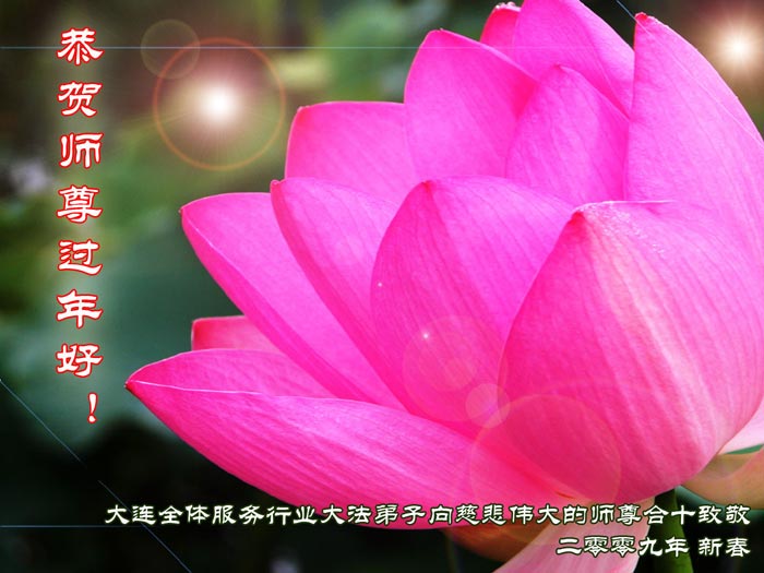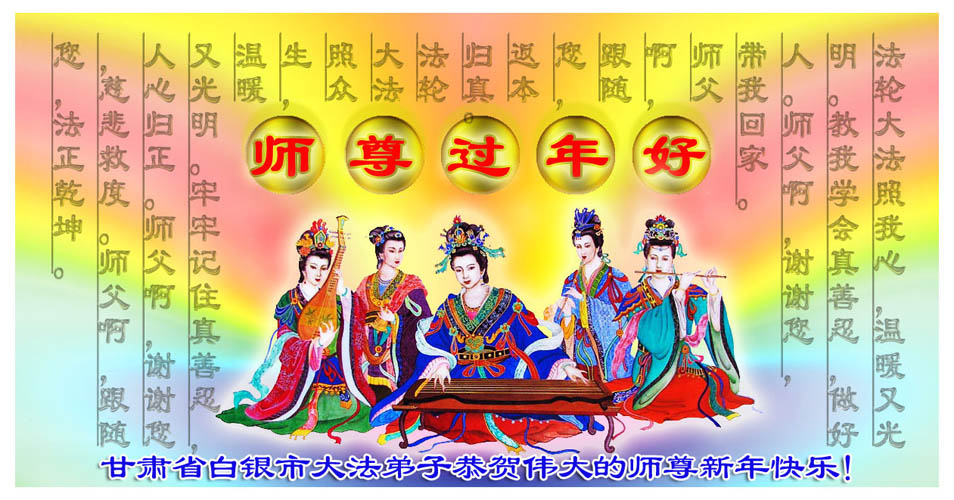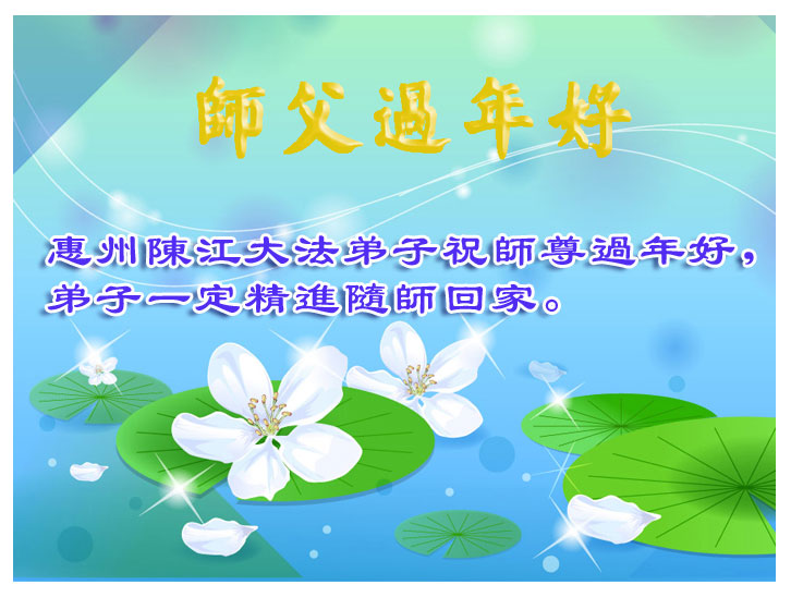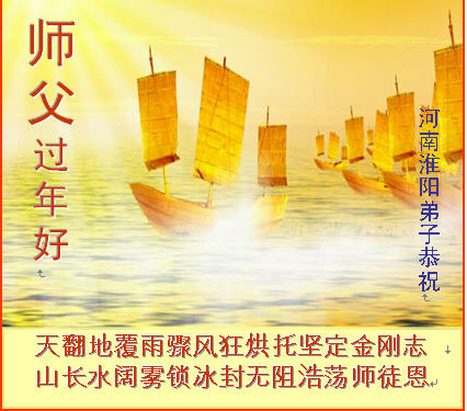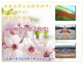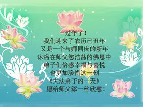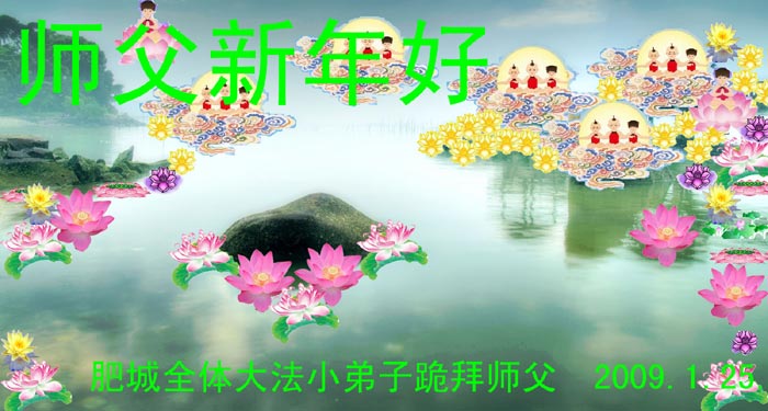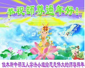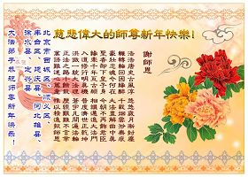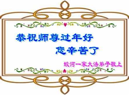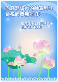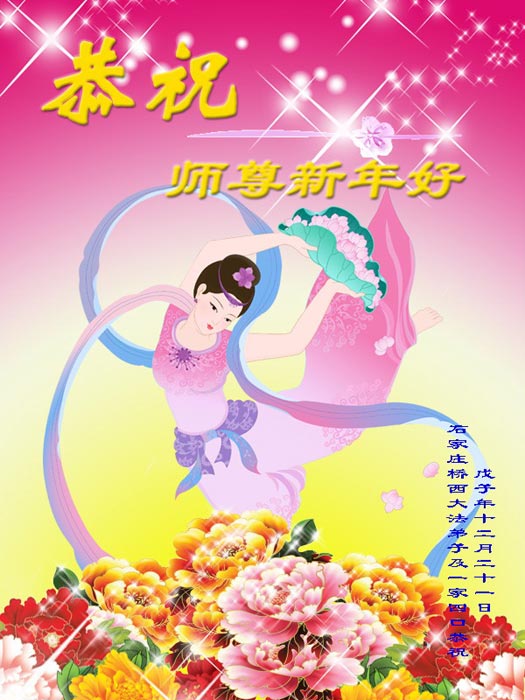 在中国新年到来之时,我们怀着无比崇敬至尊至高的心情衷心祝福师父中国新年快乐!弟子们想念师父,多想与师父同在,返本归真,回到我们真正的家园。为此只有加倍努力做好三件事,无条件的向内找,修去为私为我的旧宇宙观念,去掉最后根本的执着。讲清真相、救度众生,正念正行,完成正法时期大法弟子的伟大使命!