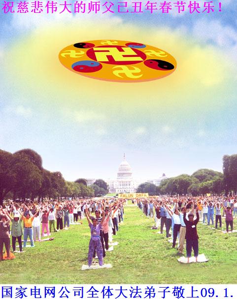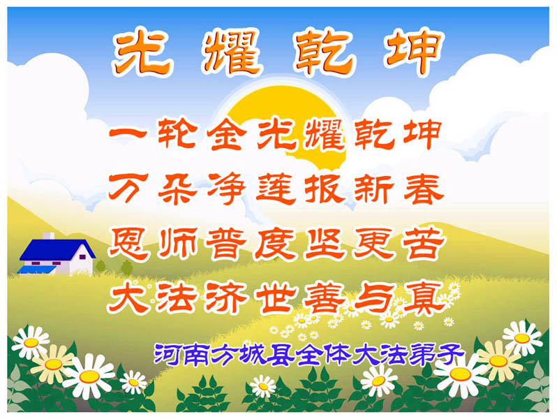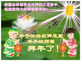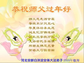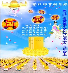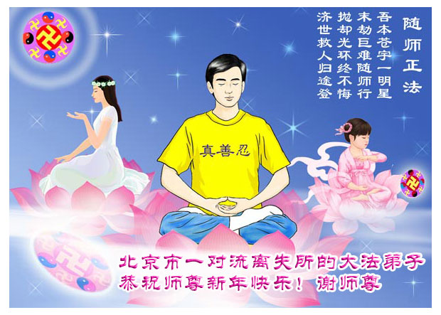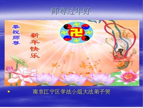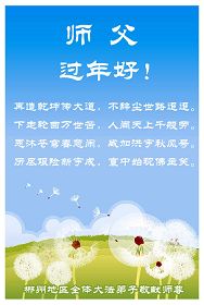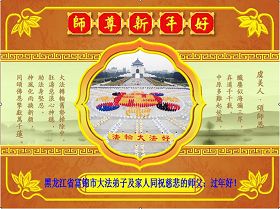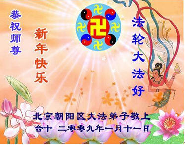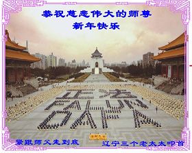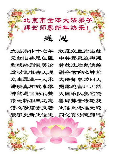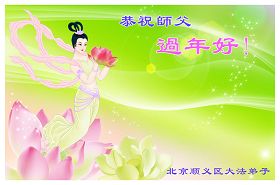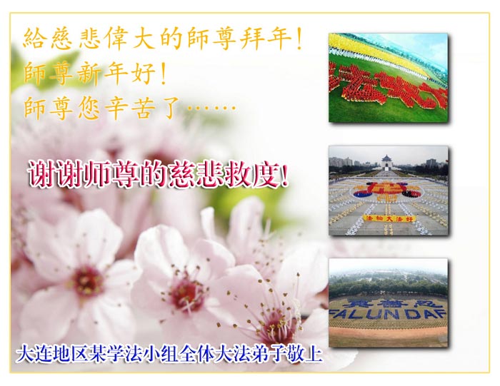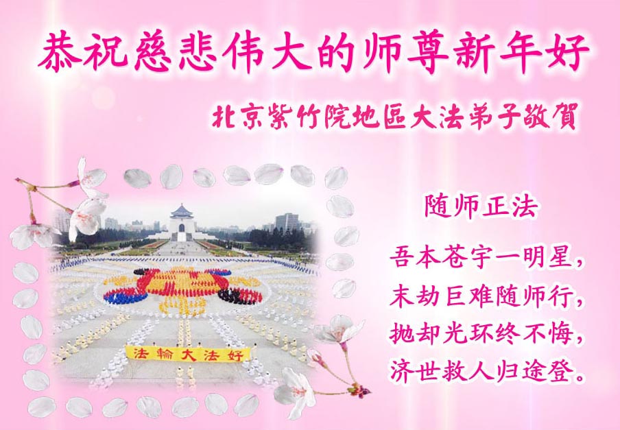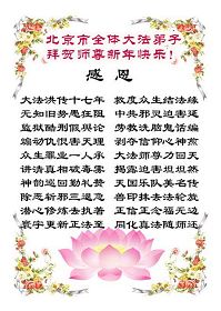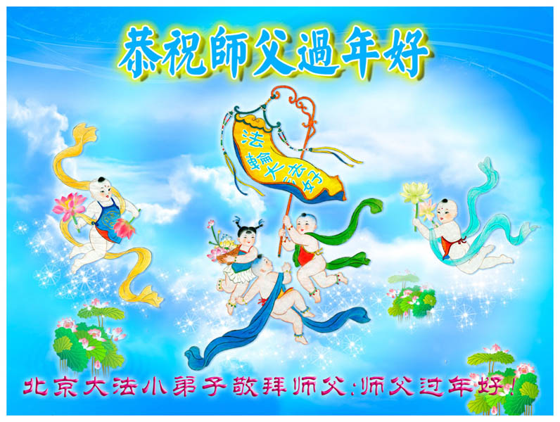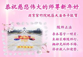 慈悲伟大的师父啊:北京西三旗、马家堡、大兴区、空军大院大法弟子给您拜年啦!