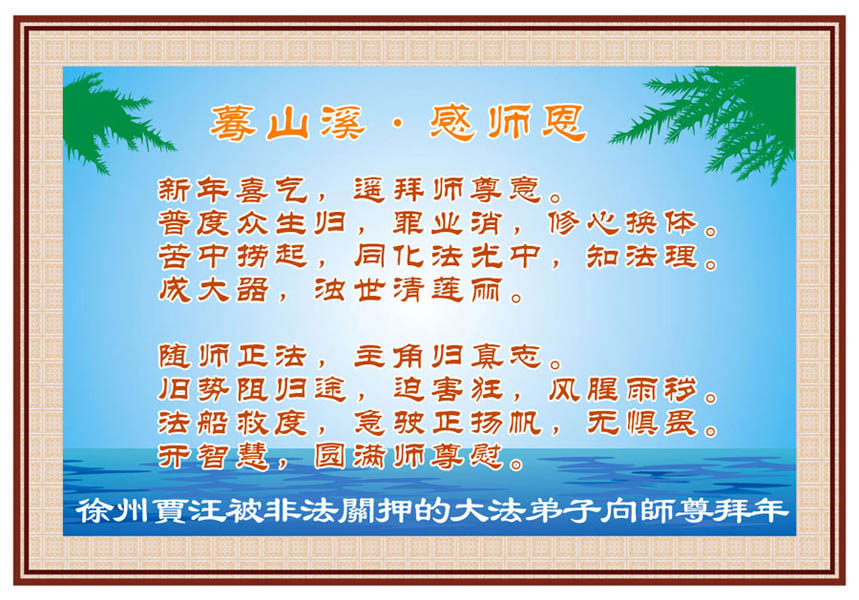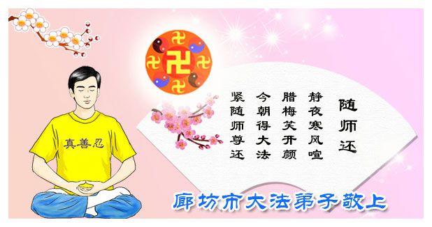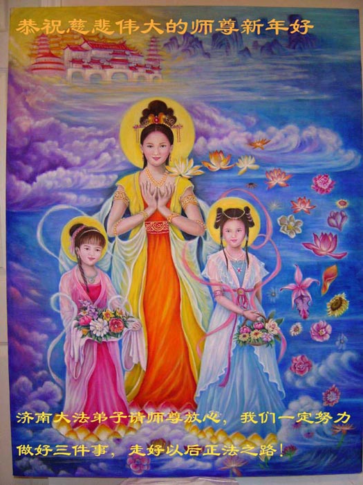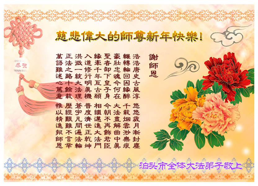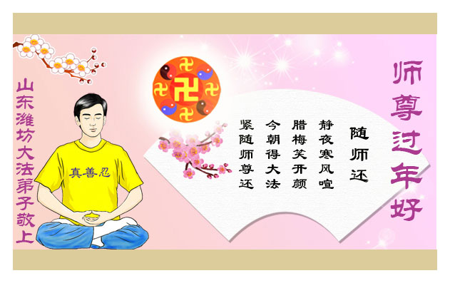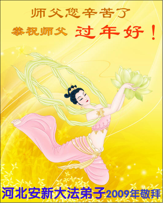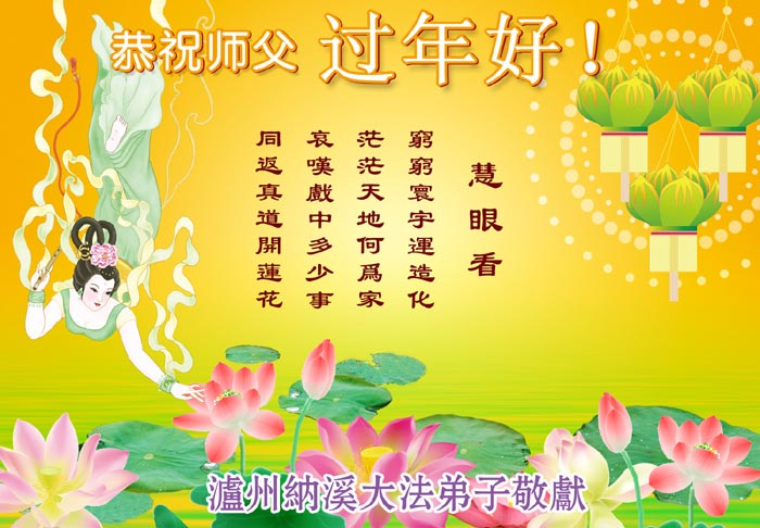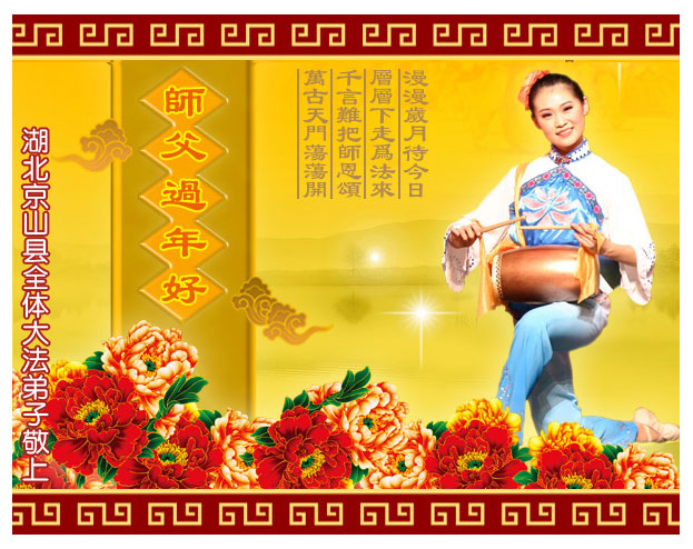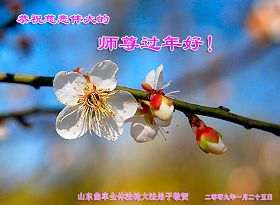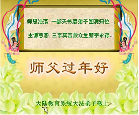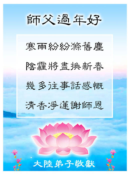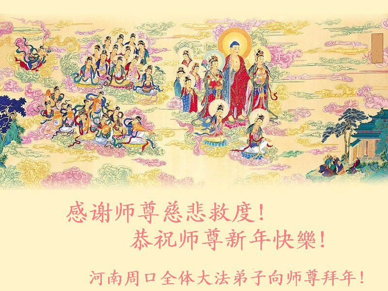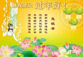 中国农历新年即将到来,大法弟子给慈悲伟大的师尊拜年,并祝师尊新年快乐。同时感谢师尊的慈悲苦度,向师尊合十叩拜。我们正在按照师尊的教诲,精進实修,认真做好三件事。
