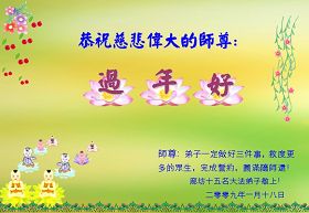 每逢佳节倍思亲,我们无比想念师父,盼望师尊早日回到祖国大陆。过去的日日夜夜,我们是在师尊的无量教导与洪大慈悲呵护下走过来的,想到这些,我们常常是泪流满面,更明今后紧跟师父走好最后的路,全力做好三件事,救度更多的世人、众生,证实大法,在人间开创大法的辉煌!