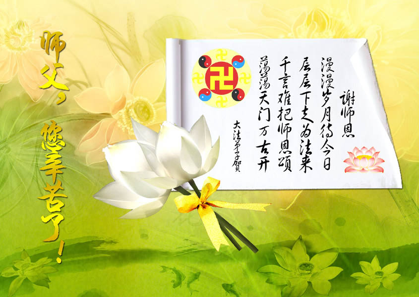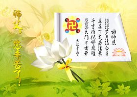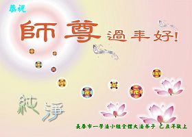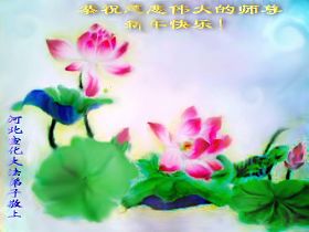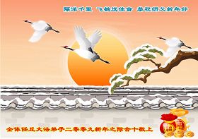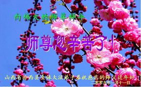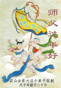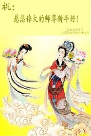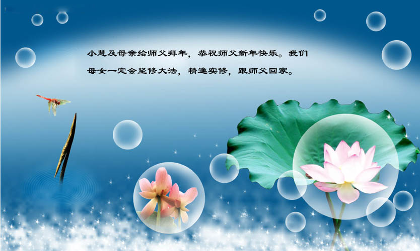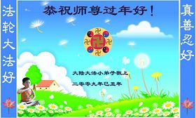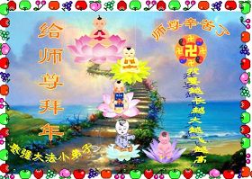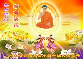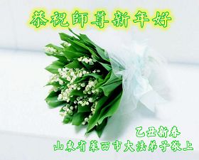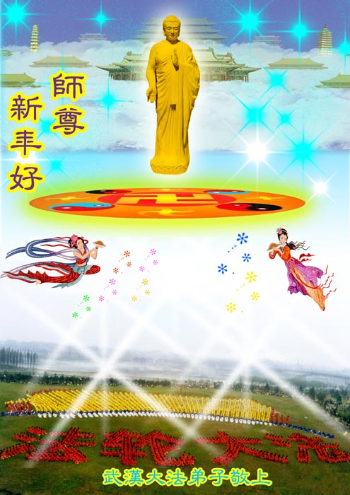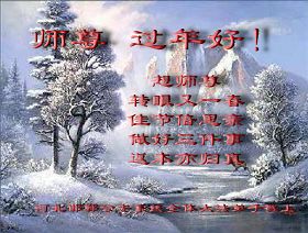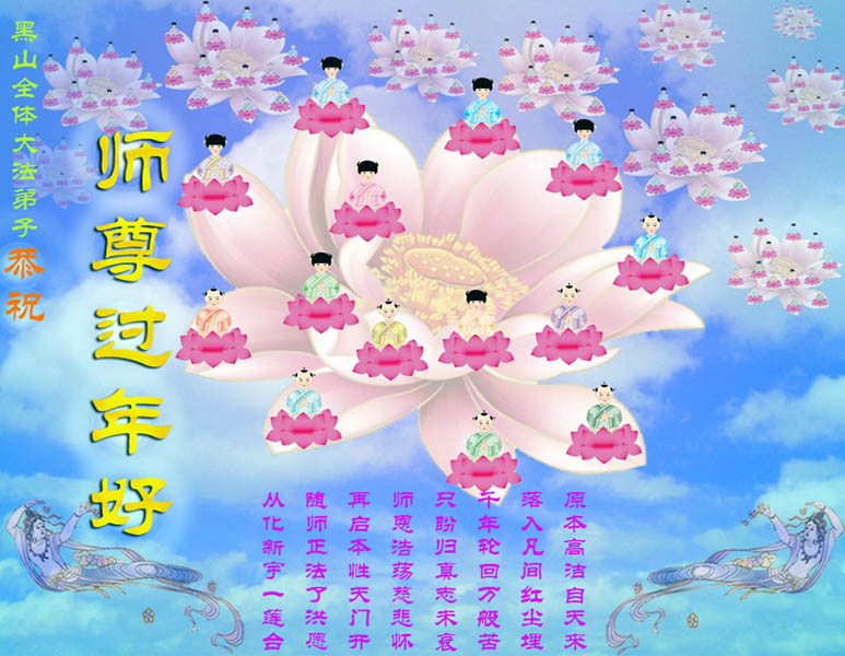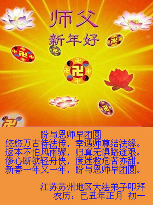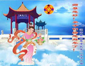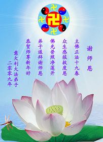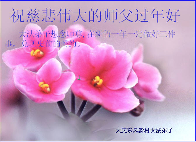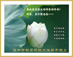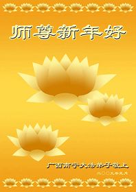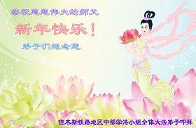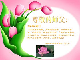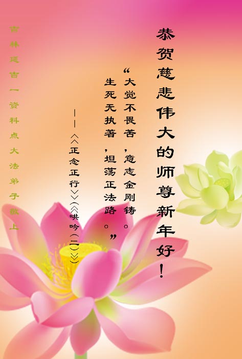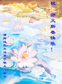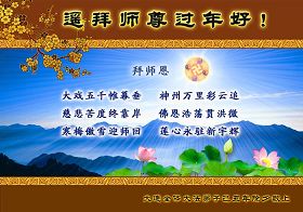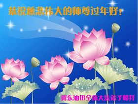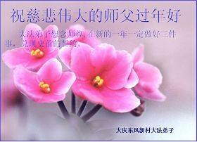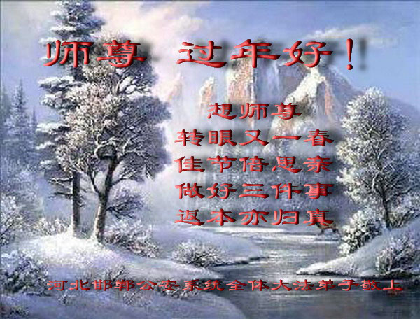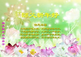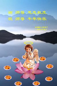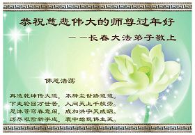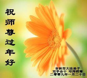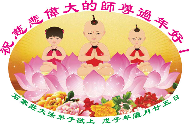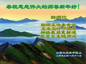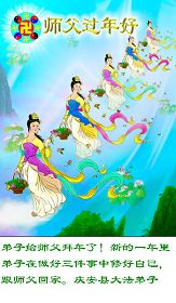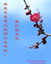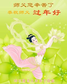 值此新春佳节即将来临之际,弟子恭祝师父新年快乐!我们一定牢记您的重托,多学法,多除恶,广救众生,早一点迎接法正人间的到来!