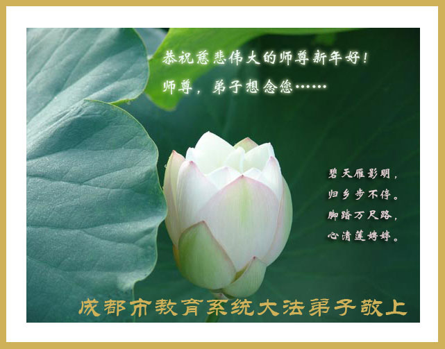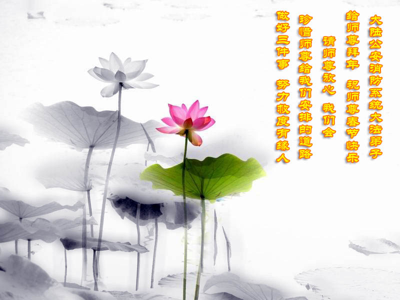 慈悲的师父:新春到来,我们公安保卫系统的大法弟子更加想念师父。无论何时、何地、身在何种环境中,我们都会以法为师,严格要求,做好“三件事”,决不辜负师父给大法弟子的荣耀。