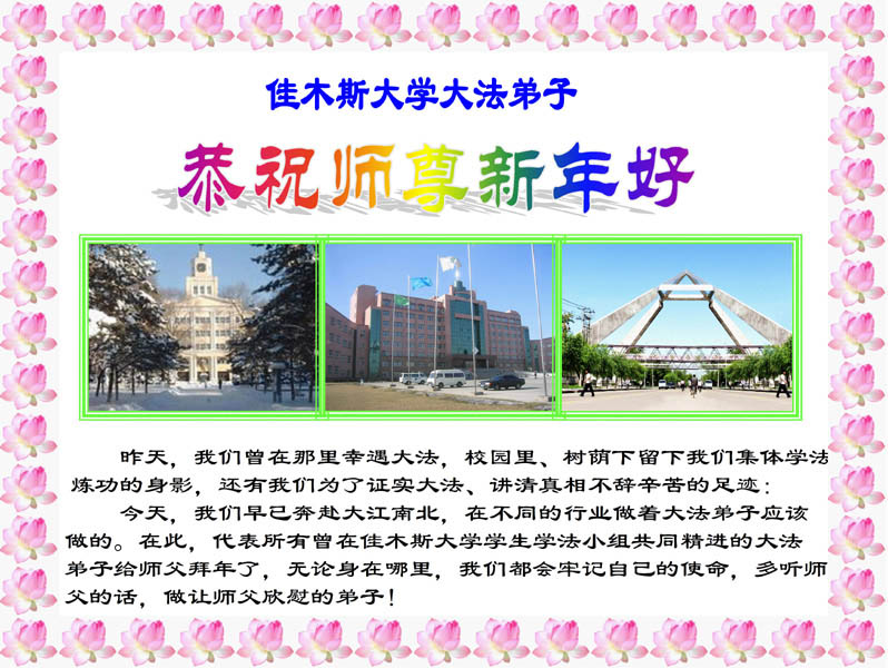 新年到了,我们向师尊拜年,祝师尊新年快乐,七台河大法弟子敬上