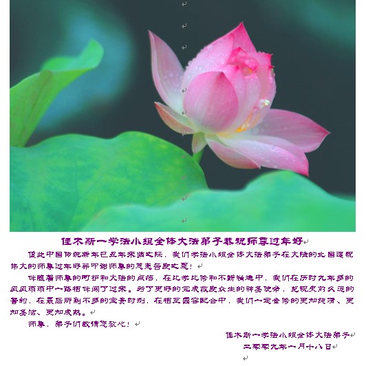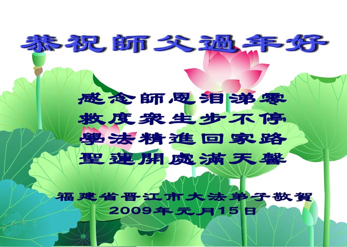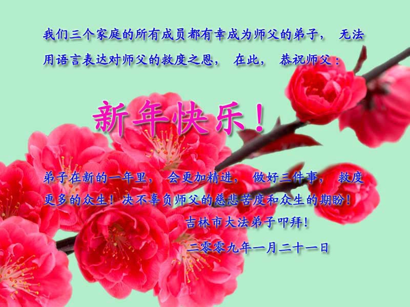 <英文版: http://www.clearwisdom.net/emh/articles/2009/1/28/104302.html>全世界大法弟子恭祝师尊新年好!
